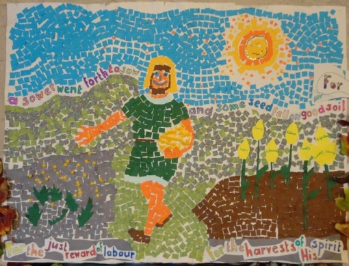 A comment about all this: for Tom Jamieson who presided at the Great Prayer of Thanksgiving over the bread and the wine once the 'sunflowers' of these prayers had been placed, it was deeply humbling to be stood among them to say that prayer, somehow encompassed by all these heartfelt expressions of concern and love and gratitude. It's what we are about.