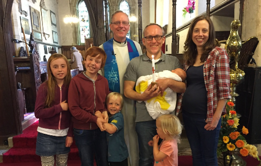 Baptism of Chloe, just days after her birth, at Michaelmas. Guardian angels or what!