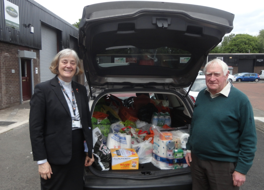Lyn and Alan see to our delivery for the Gateshead Food Bank